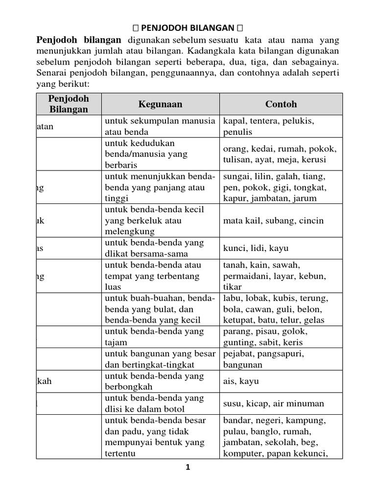 Tingkatan 1 Bahasa Melayu Penjodoh Bilangan Sumber Pengajaran